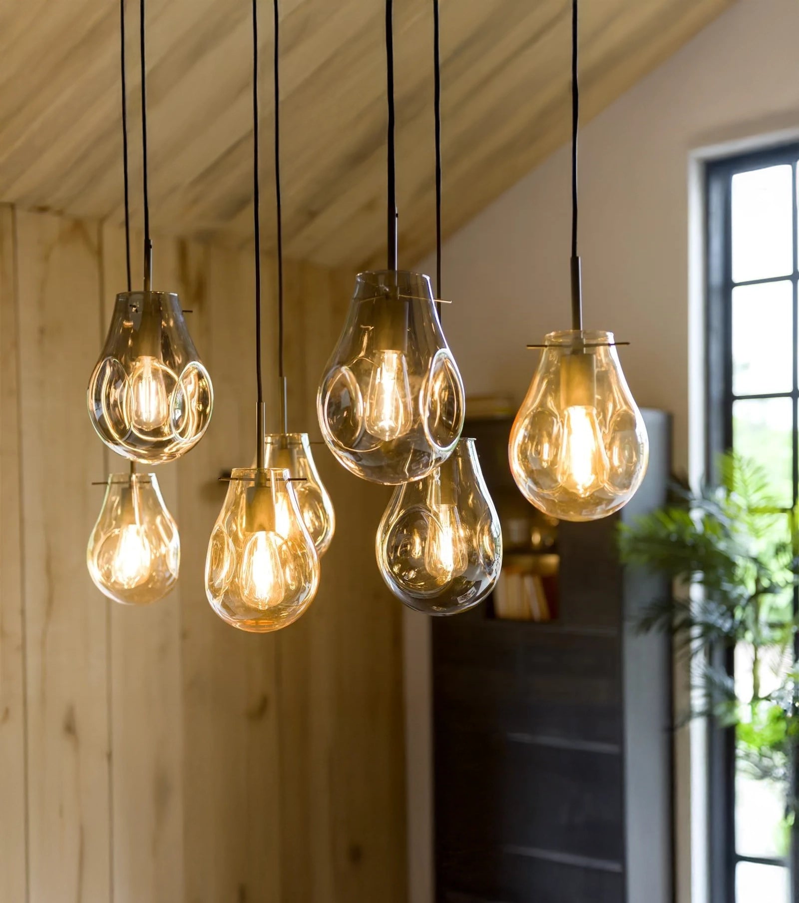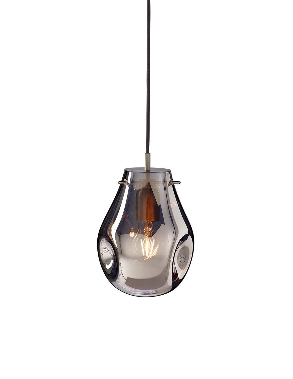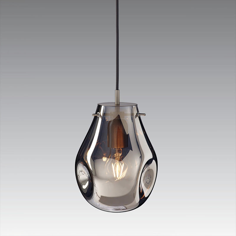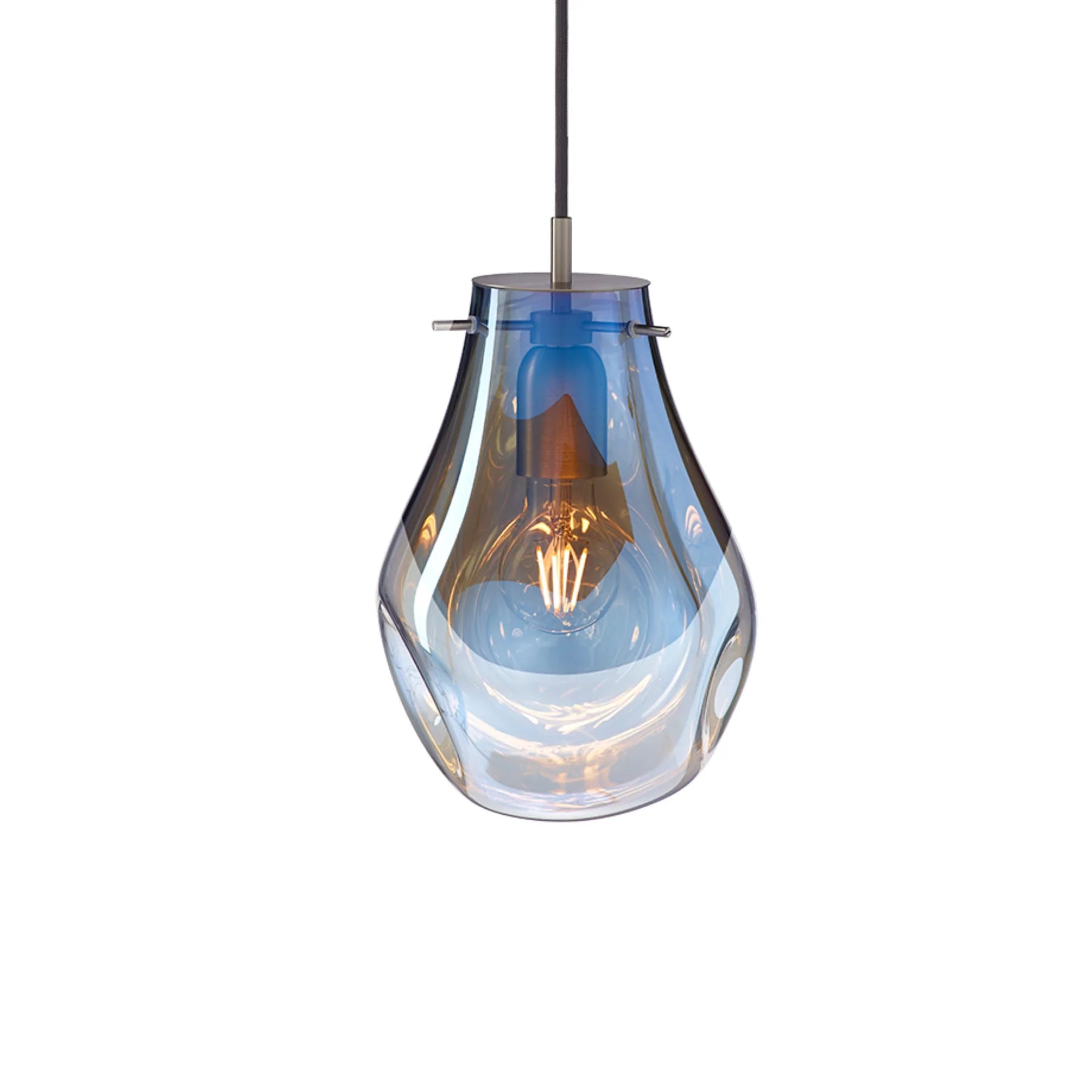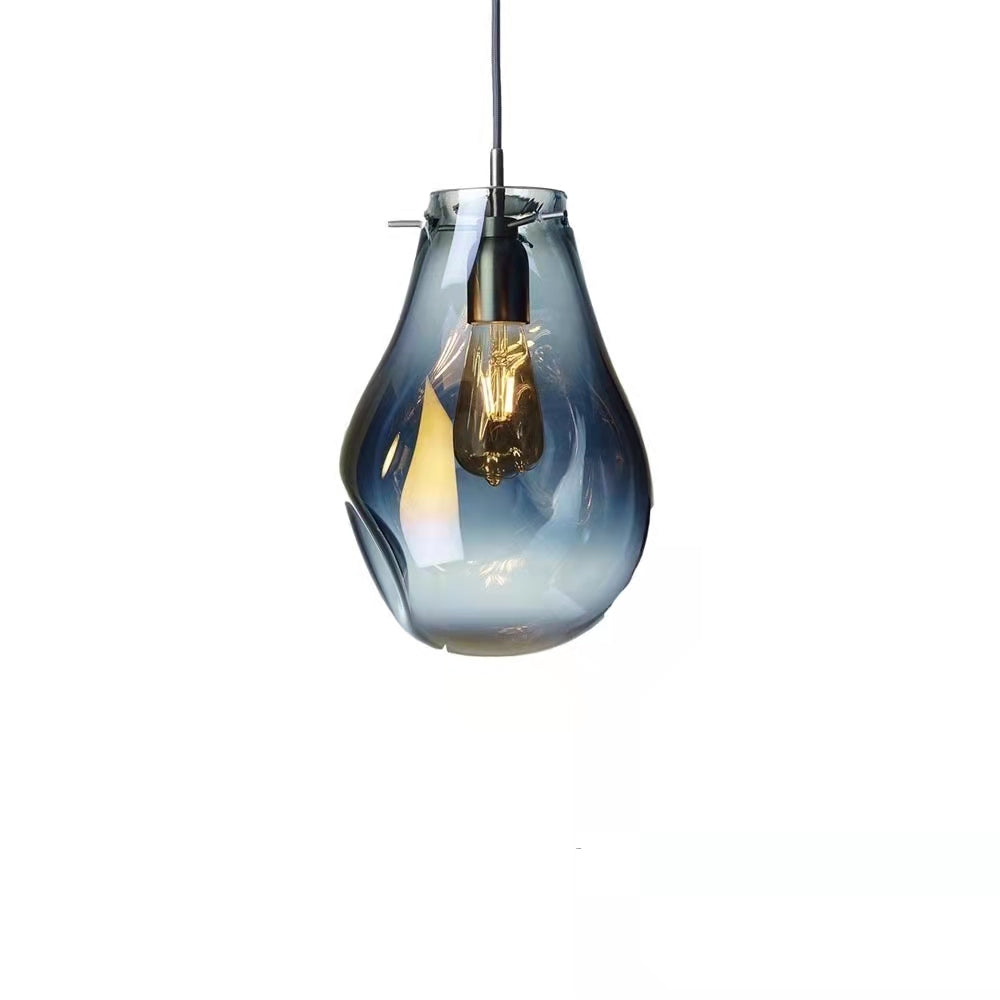 مصباح معلّق بتصميم بسيط مصنوع من الزجاج المنفوخ يدويًا وهيكل معدني، يعمل بمقبس E27، ويُستخدم مع لمبة واحدة. شكله البيضاوي اللامع يجعل منه خيارًا هادئًا ومناسبًا للمطابخ، المداخل، وغرف الطعام.