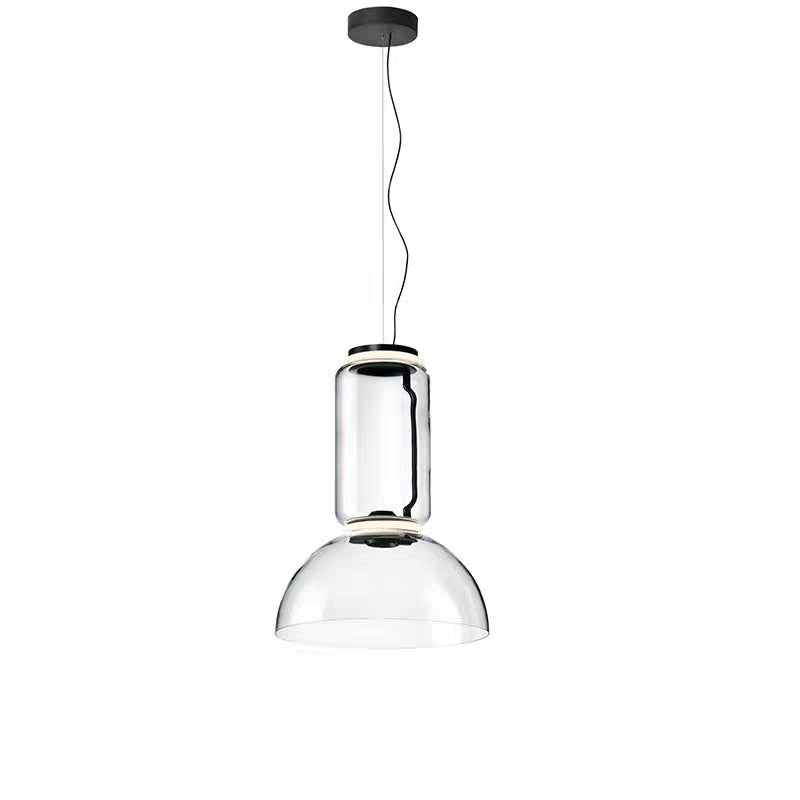 مصباح زجاجي بتصميم زخرفي أنيق، بهيكل معدني مطلي ومظهر عصري دائري
